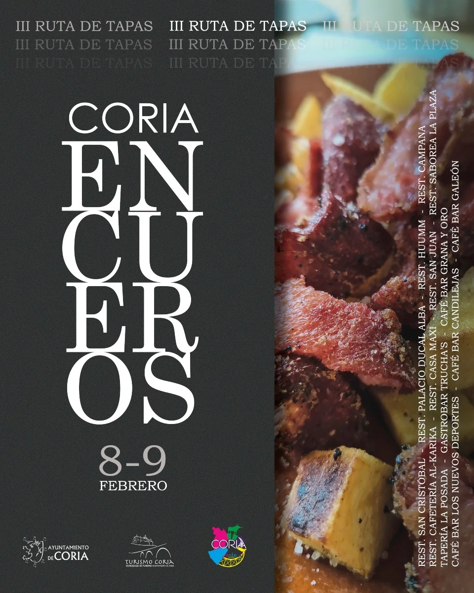 El Ayuntamiento de Coria, a través del departamento de turismo y en colaboración con la hostelería de la ciudad, celebrará un año más la cita gastronómica, III Ruta de Tapas “Coria EnCueros” que tendrá lugar el próximo fin de semana, los días 8 y 9 de febrero.