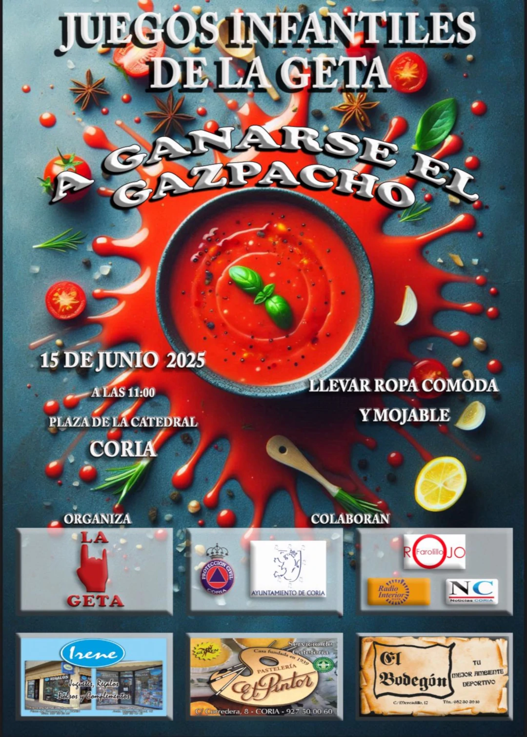 Plaza de la Catedral Plaza de la Catedral s/n, Coria, Cáceres, EspañaActividades infantiles organizadas por la Peña de la Geta. A ganarse el gazpacho. Llevar ropa cómoda y mojable.