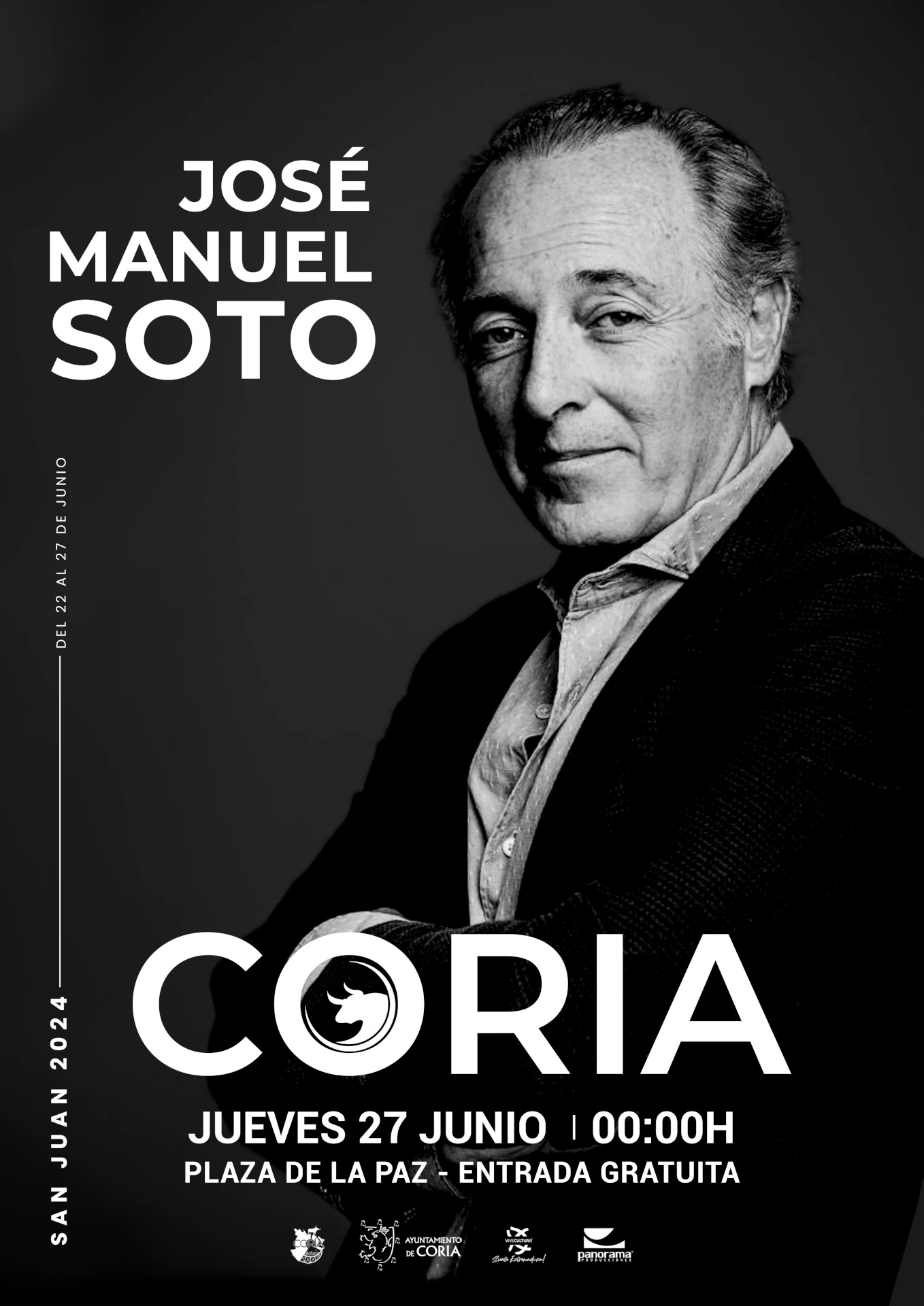 Plaza de la Paz Plaza de la Paz, s/n, Coria, Cáceres, EspañaJosé Manuel Soto José Manuel Soto es un reconocido cantante español que ha cautivado a su audiencia con su voz única y su estilo inconfundible. Con una carrera musical que abarca décadas, Soto se ha destacado en el género de la rumba y la balada, convirtiéndose en un referente en la música española. Su pasión por la música se refleja en cada una de sus interpretaciones, transmitiendo emociones y conectando con su público de una manera especial. Con una voz potente y emotiva, José Manuel Soto ha dejado una huella imborrable en la industria musical, siendo admirado por su talento y su autenticidad.