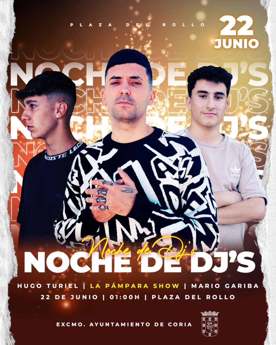 Plaza del Rollo Plaza del Rollo, Coria, Cáceres, EspañaNoche de DJs con: Hugo Turiel, La Pámpara Show y Mario Gariba.