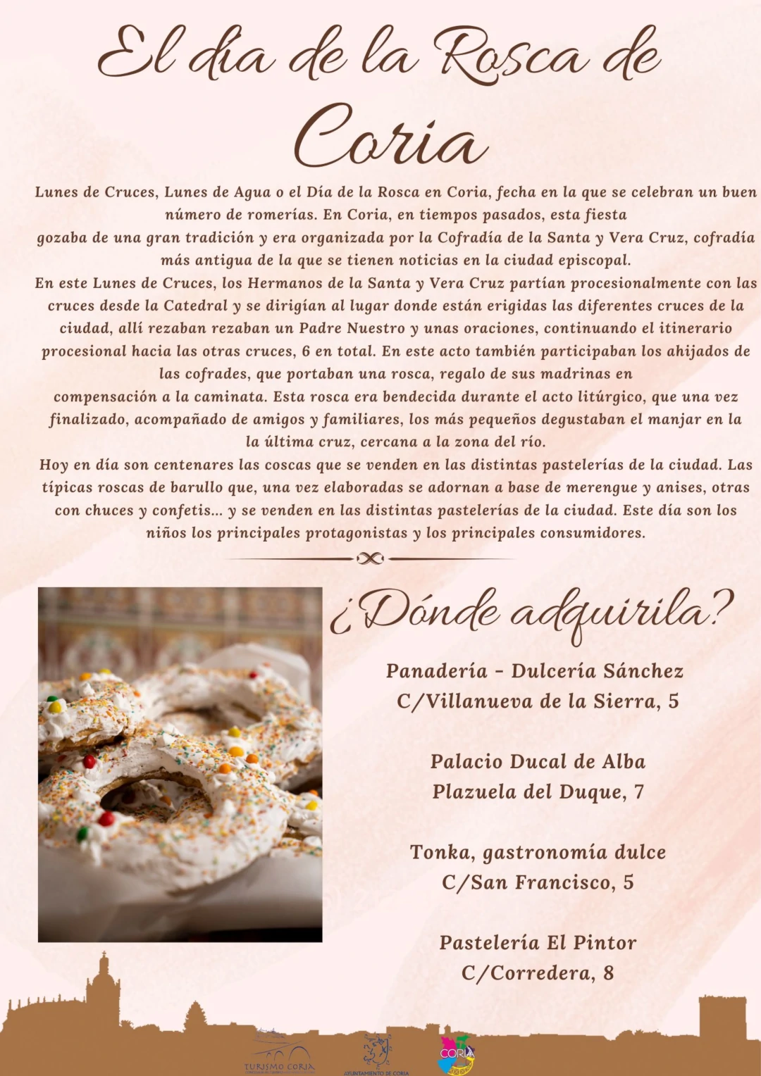 𝐄𝐥 𝐬𝐚𝐛𝐨𝐫 𝐝𝐞 𝐮𝐧𝐚 𝐭𝐫𝐚𝐝𝐢𝐜𝐢𝐨́𝐧 𝐝𝐞 𝐮𝐧𝐚 𝐭𝐫𝐚𝐝𝐢𝐜𝐢𝐨́𝐧 𝐪𝐮𝐞 𝐧𝐨𝐬 𝐮𝐧𝐞... En Coria, el 𝐃í𝐚 𝐝𝐞 𝐥𝐚 𝐑𝐨𝐬𝐜𝐚 es mucho más que un dulce: es infancia, es familia, es costumbre. Es una de las tradiciones más bonitas, que hoy sigue viva y este año se celebra el 𝟐𝟖 𝐝𝐞 𝐚𝐛𝐫𝐢𝐥, pero desde el 𝟏𝟎 𝐝𝐞 […]
