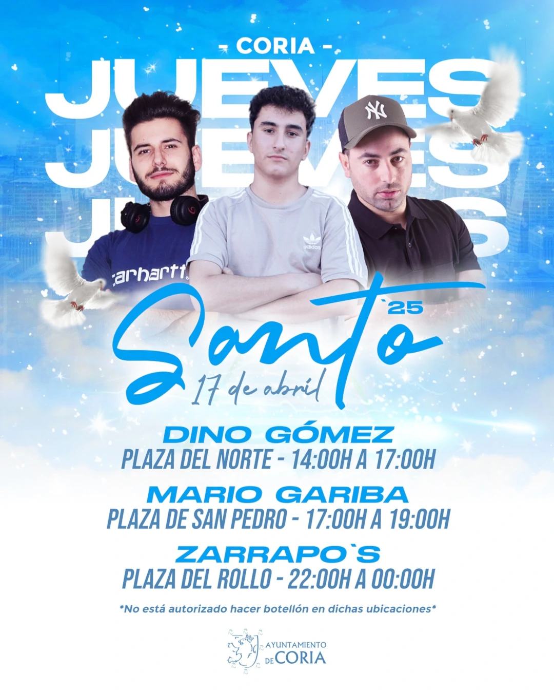 El Ayuntamiento de Coria, a través de la concejalía de juventud anuncia que este Jueves Santo se celebrará una fiesta para todos los jóvenes de nuestra localidad y visitantes. ¡Ven a disfrutar de un día lleno de buena música, diversión y, por su puesto, los mejores Djs de la zona!