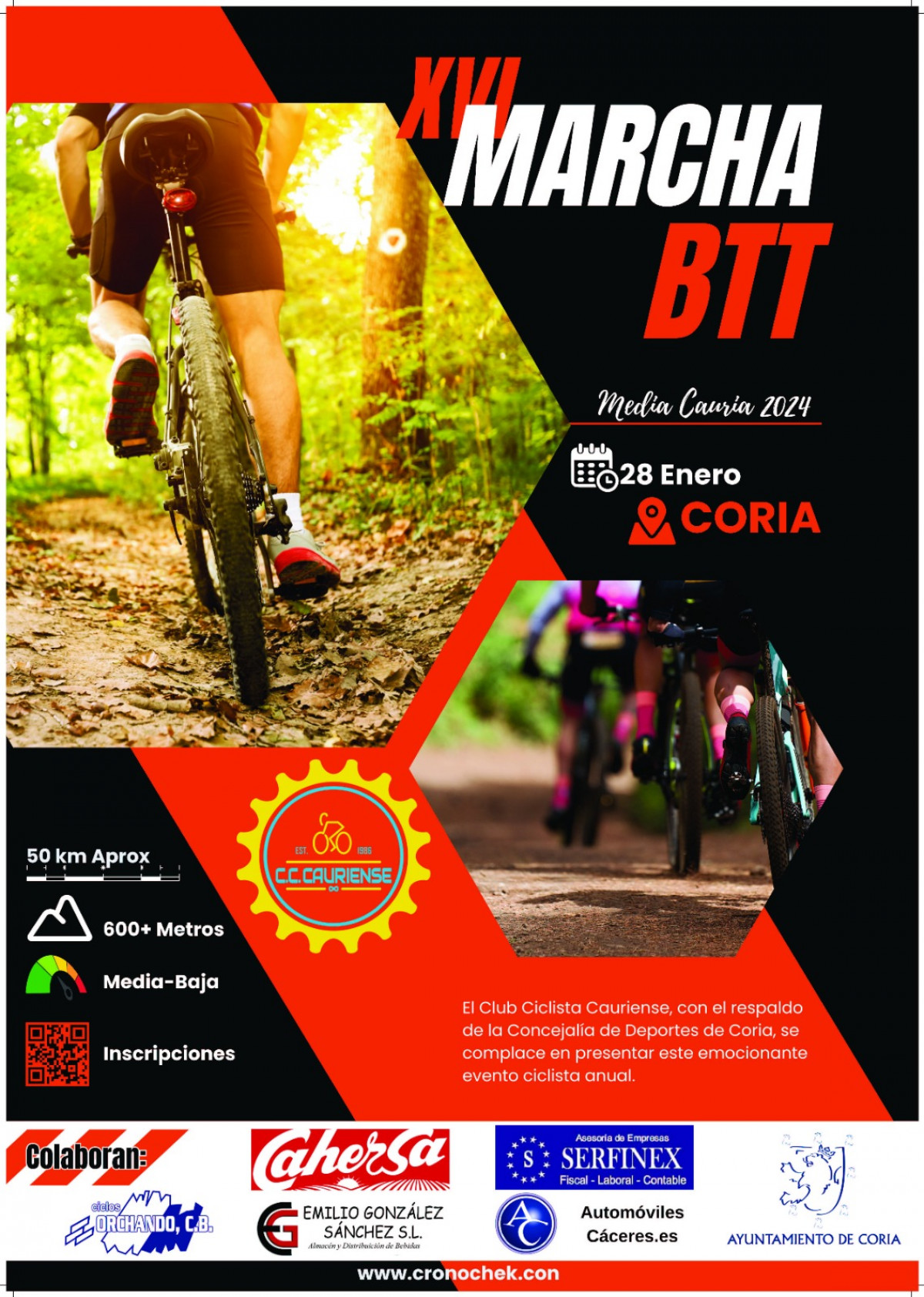 El Club Ciclista Cauriense, junto con la colaboración del Ayuntamiento de Coria, presenta la XVI MARCHA DE BTT “MEDIA CAURIA”, que en la presente edición 2024 tendrán lugar el DOMINGO 28 DE ENERO, siendo la hora de salida de la BTT a las 09:30 horas desde el Paseo de la Isla. La entrega de dorsales […]