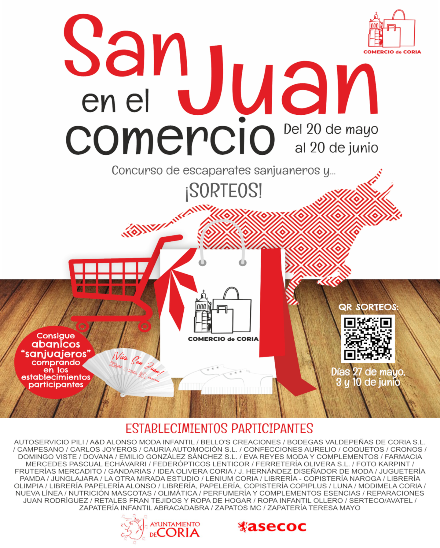 Cabe recordar que, el Ayuntamiento de Coria, en su afán por apoyar el Comercio Local, vuelve a organizar, desde el Departamento de Desarrollo Local y Comercio, una iniciativa interesante para fomentar las compras con motivo de las Fiestas de San Juan que se celebran del 23 al 29 de junio. Una de las partes de […]
