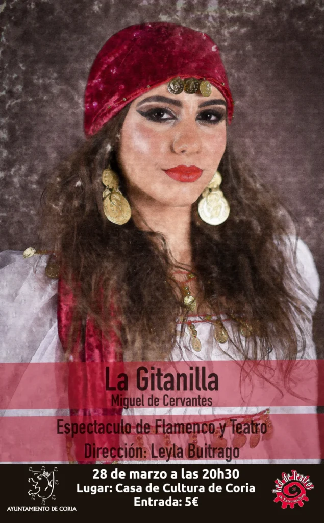 Dentro de esta adaptación de La Gitanilla, Leyla Buitrago, su directora, hace un viaje atrás en el tiempo, mostrando el flamenco más puro a través de palos como soleares, seguidillas, romances, fandangos, cantiñas y tangos, no sin obviar muestras y detalles regionales de nuestra tierra y todo ello apoyado por una trama teatral que ayuda al público al buen entendimiento de esta obra y a estar inmersos durante todo el espectáculo en este viaje en el tiempo en el que se desarrolla una apasionante y cómica historia de amor.