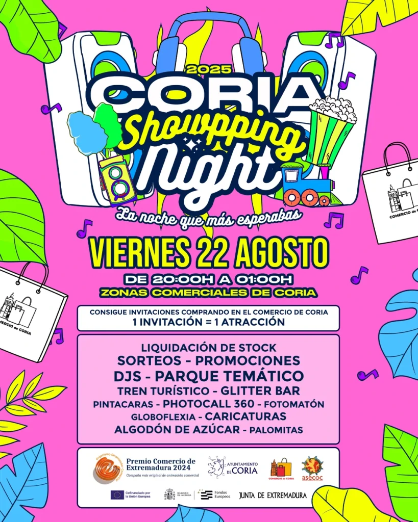 El Ayuntamiento de Coria a través del departamento de desarrollo local y comercio, tras el éxito en las ediciones anteriores, ha organizado la que se ha convertido ya en una de las noches más esperadas del año para el Comercio de Coria, la denominada “Showpping Night”.